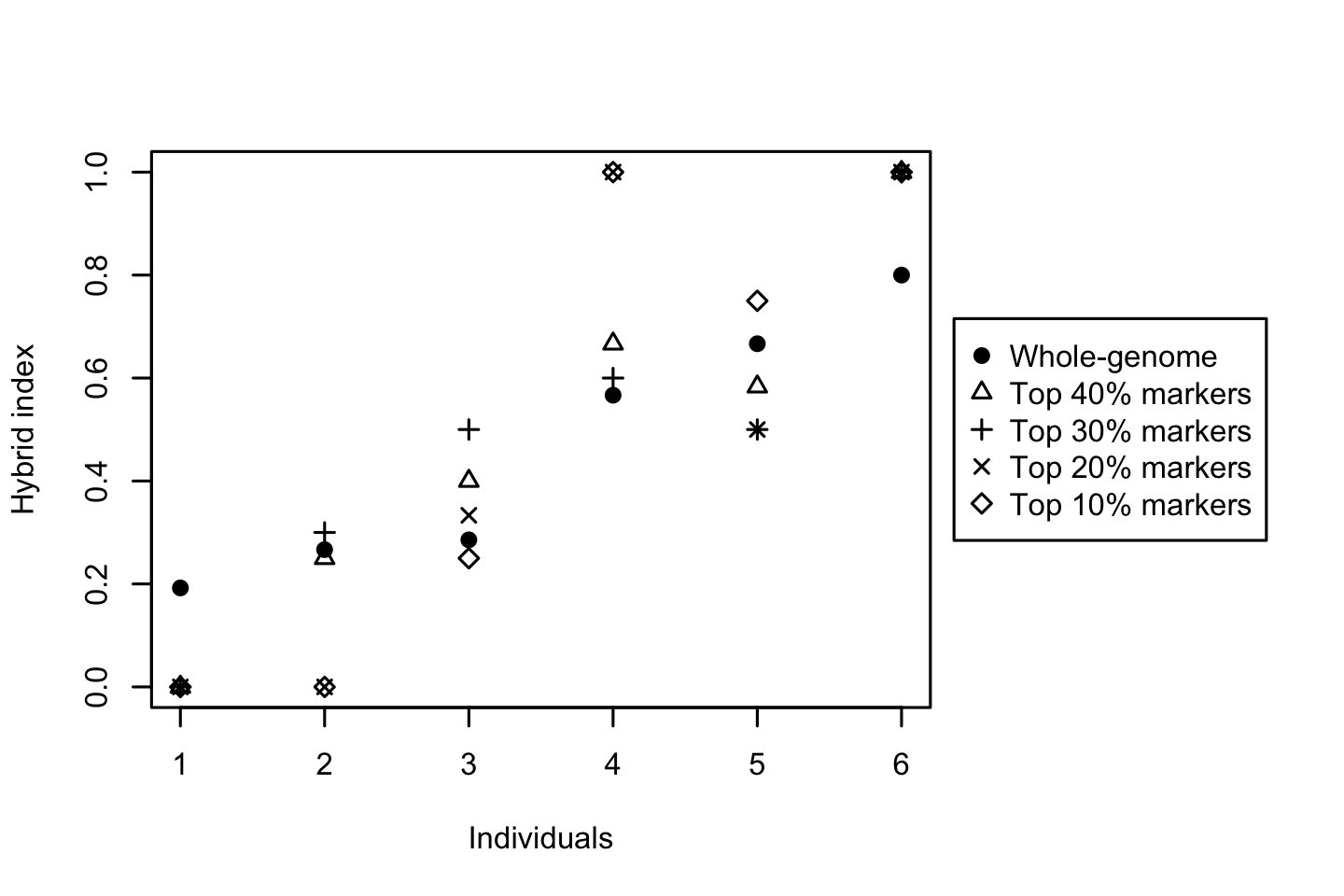 legend = c("Whole-genome", paste0("Top ", 100 * (1 - thresholds), "% markers")),