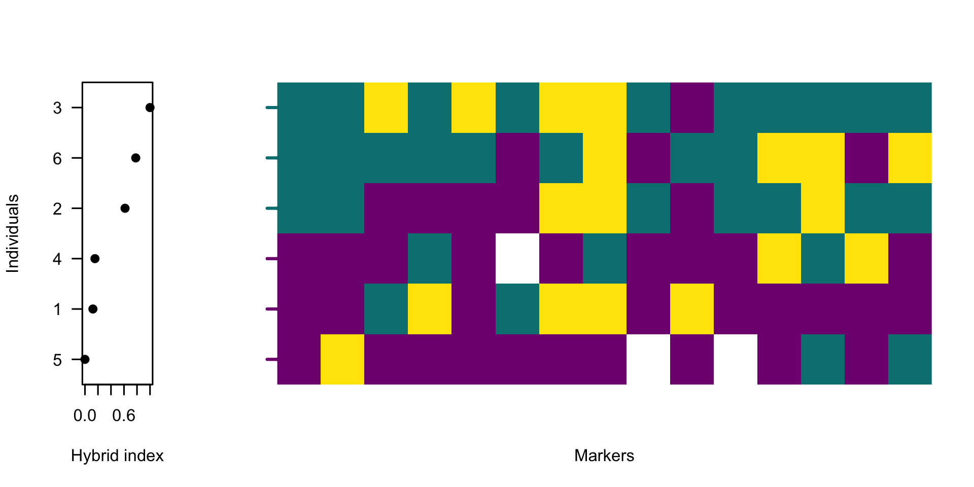 HI <- hybridIndex(gen[, whichMarkers], rescale = FALSE)