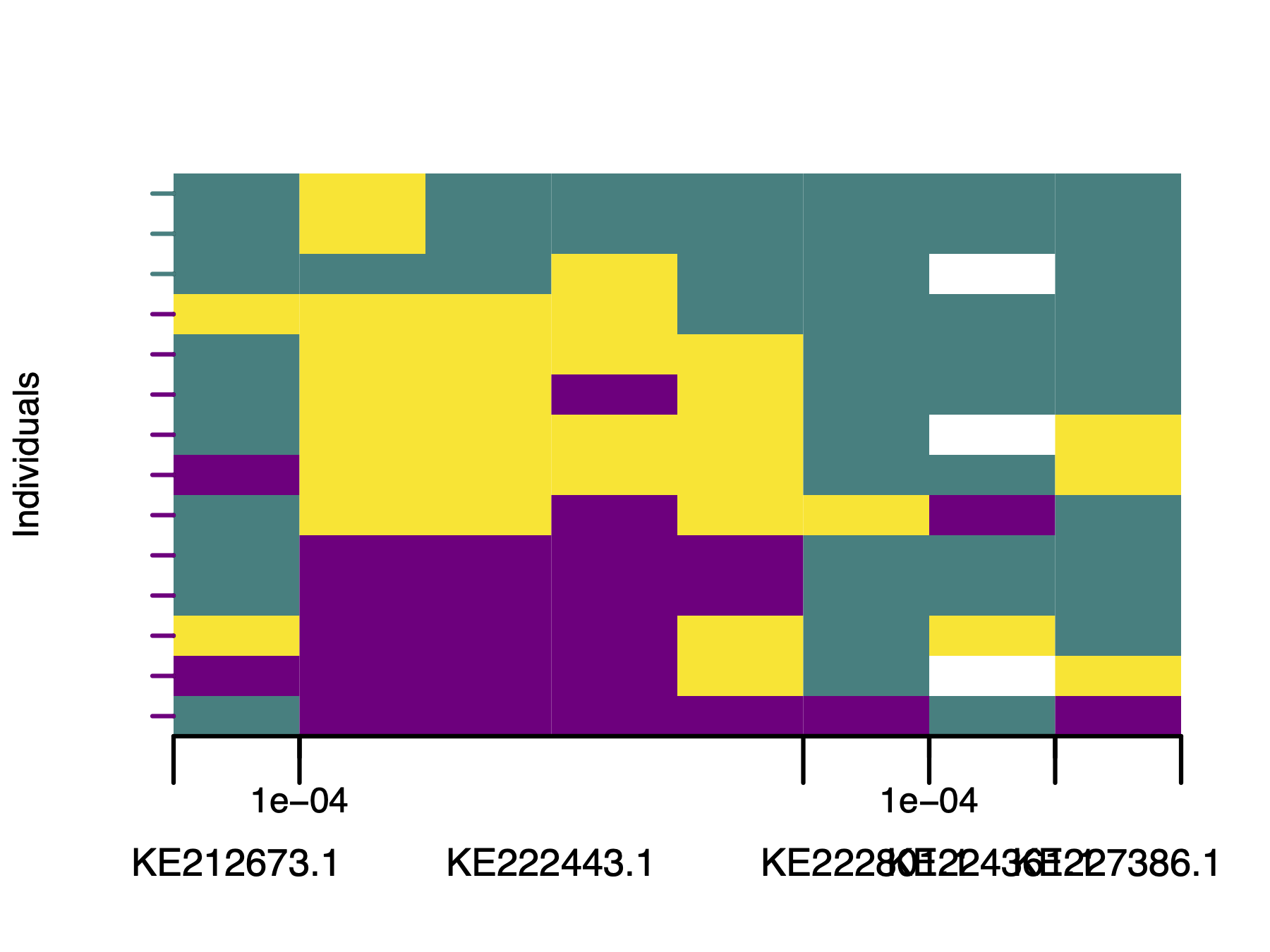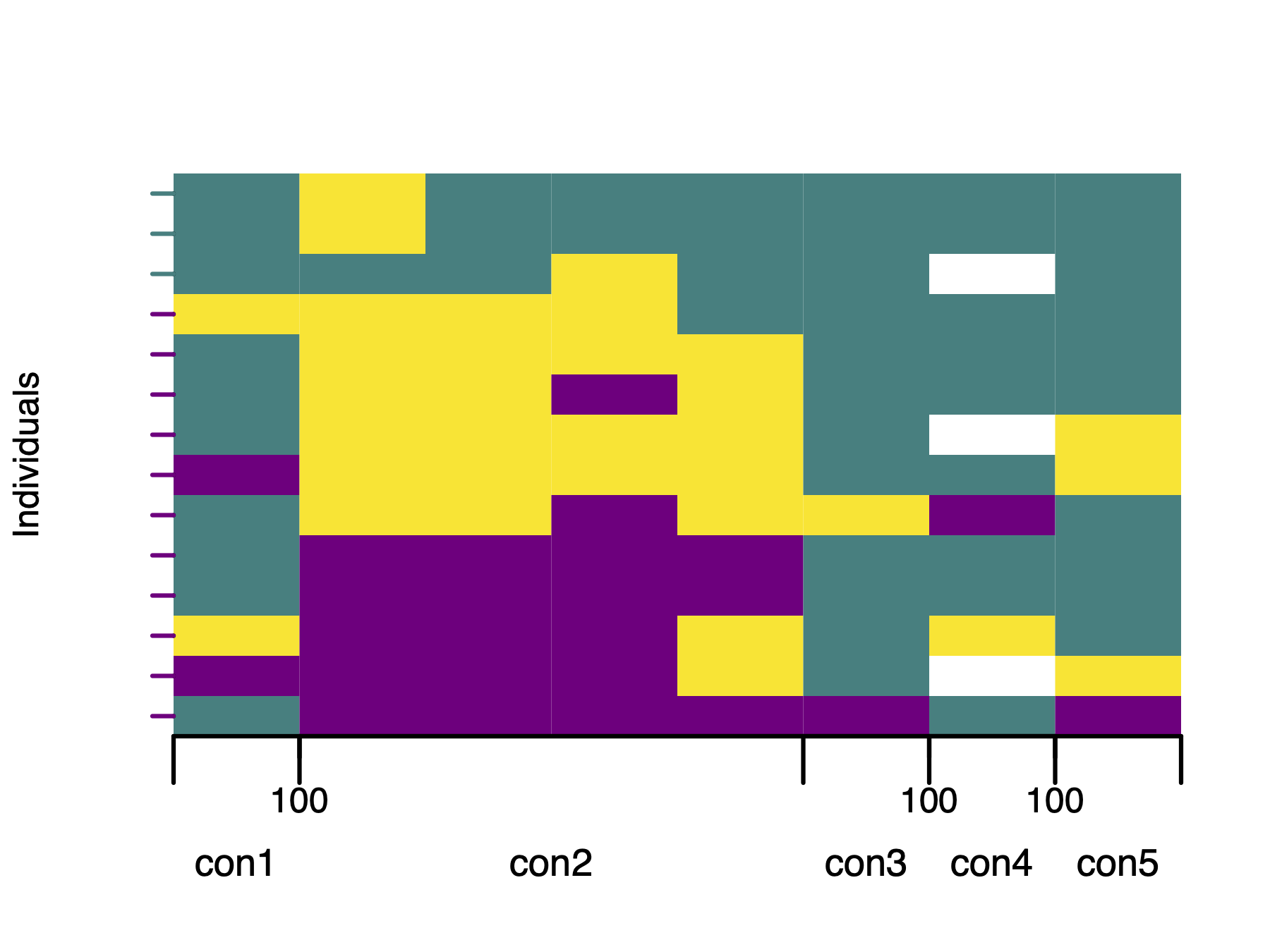 Rows represent individuals and columns represent single-nucleotide variants (SNVs).